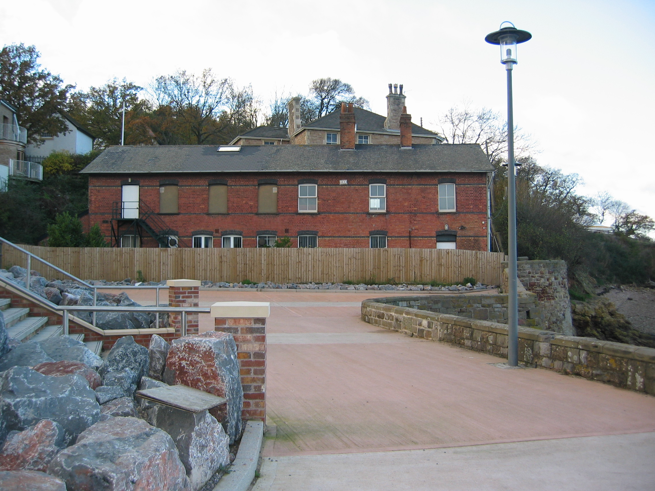 At the end of the line there was a station by the pier, whose main redbrick building stood at the bottom of the steps leading down from the Royal Hotel until 2014 when it was demolished (photo below – click to enlarge). An RNLI lifeboat station now stands on the site.