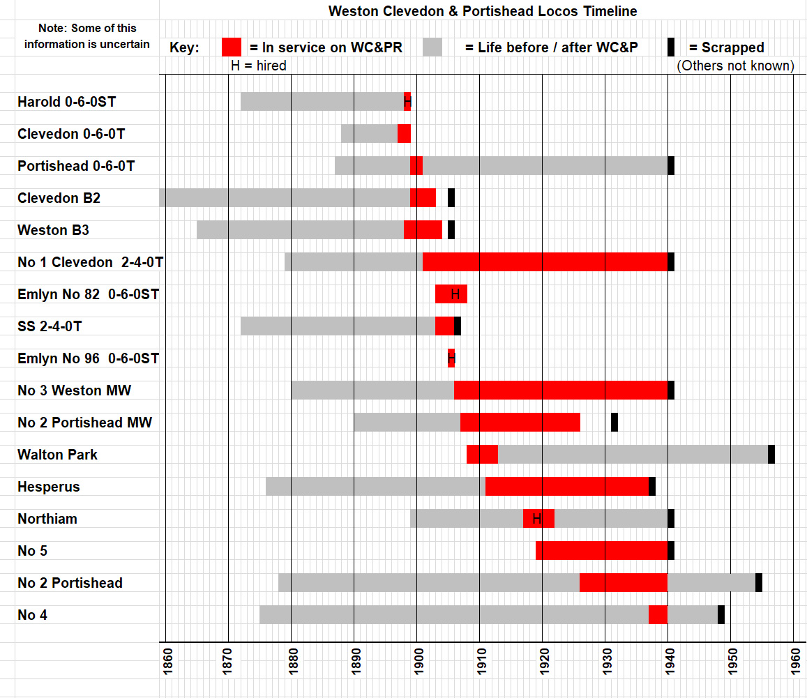 Engines are listed in order of purchase or hire date. Note that some names and engine numbers were re-cycled – very confusing ! Numbering of locos only started in 1906. |