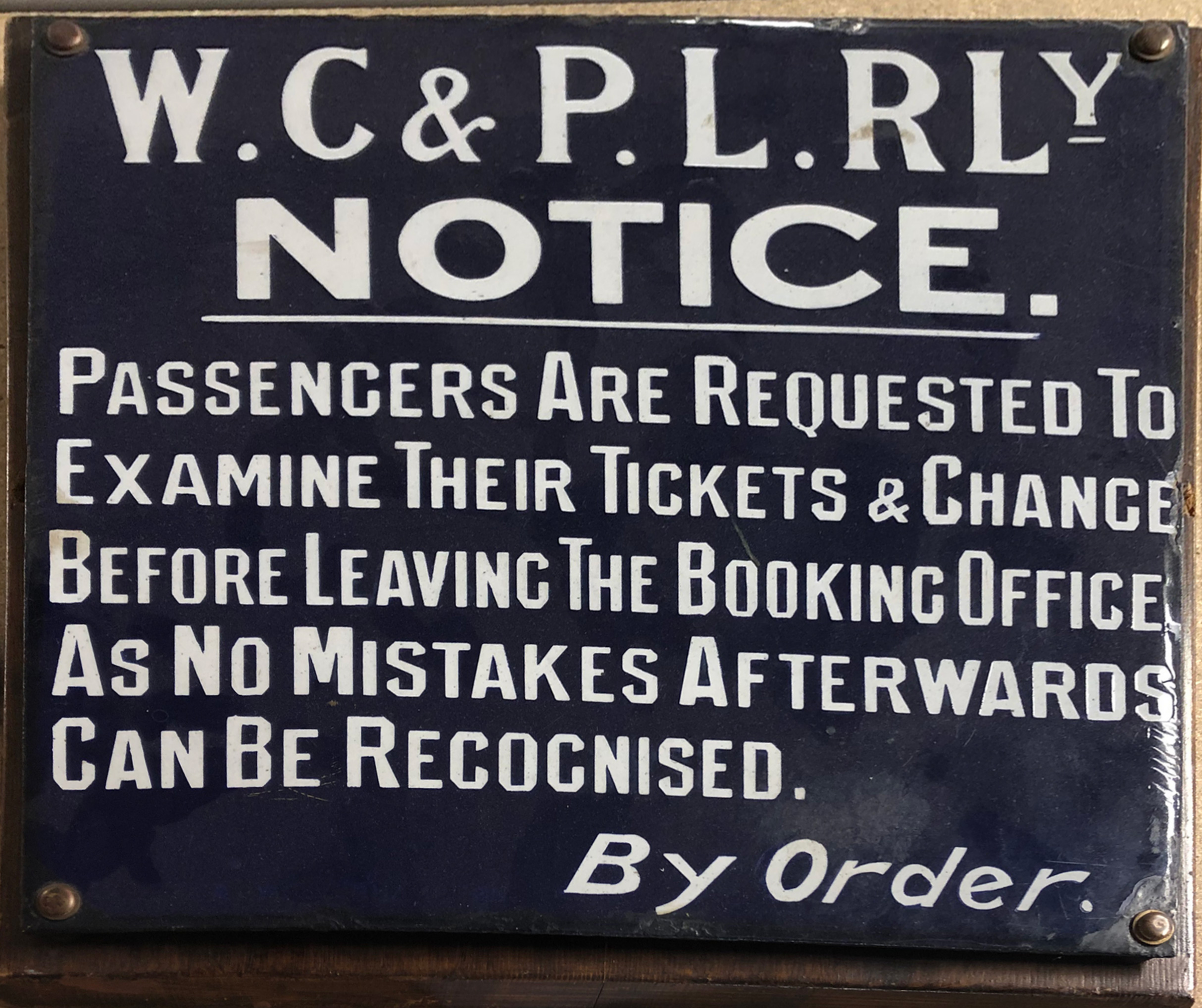 Photo of original Enamelled sign An original is at Col Stephens' Museum
